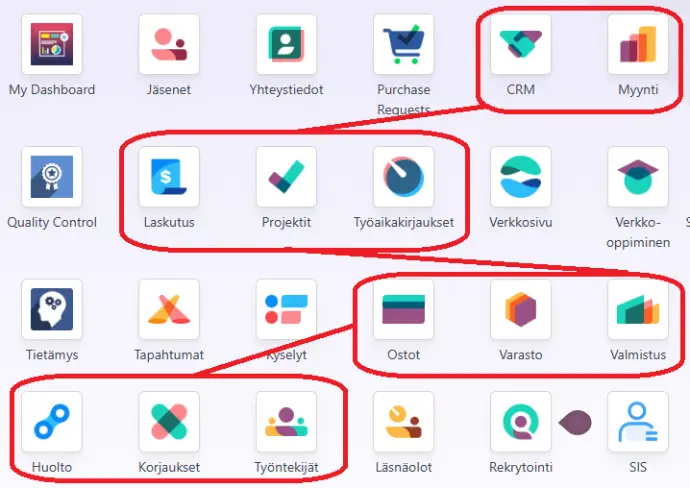 Odoo-pohjainen Futural toiminnanohjausjärjestelmä tarjoaa laajan valikoiman moduuleja eri käyttötarkoituksiin – tuotannonohjauksesta projektinhallintaan ja myynnistä taloushallintoon.
