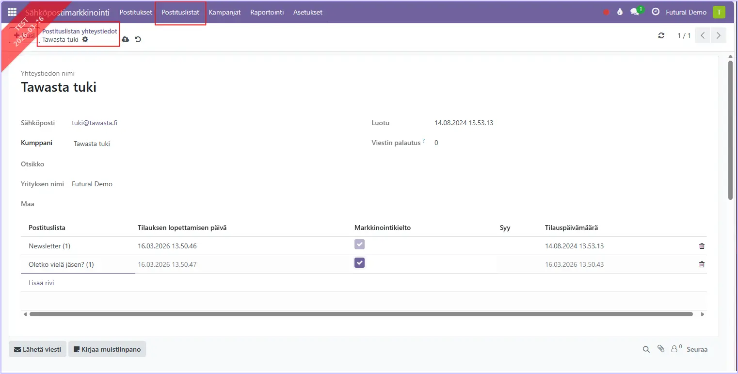 Henkilön tiedot voidaan poistaa pyynnöstä myös esimerkiksi vain osaajarekisteristä, mutta jättää yhteystietokortti järjestelmään esimerkiksi verkkokauppa-asiointia varten.