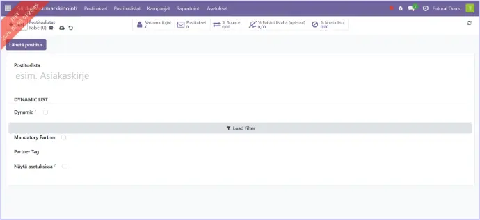 Voit luoda uuden postituslistan valitsemalla Luo.