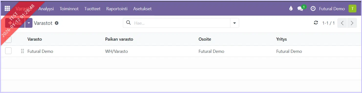 Järjestelmään voidaan määrittää useita varastoja.