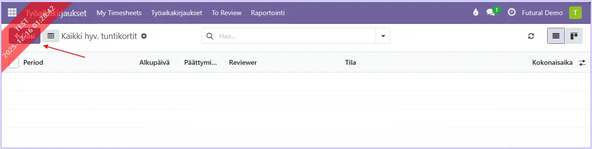 Uusi kirjauksen ajankohta aloitetaan klikkaamalla +Luo painiketta