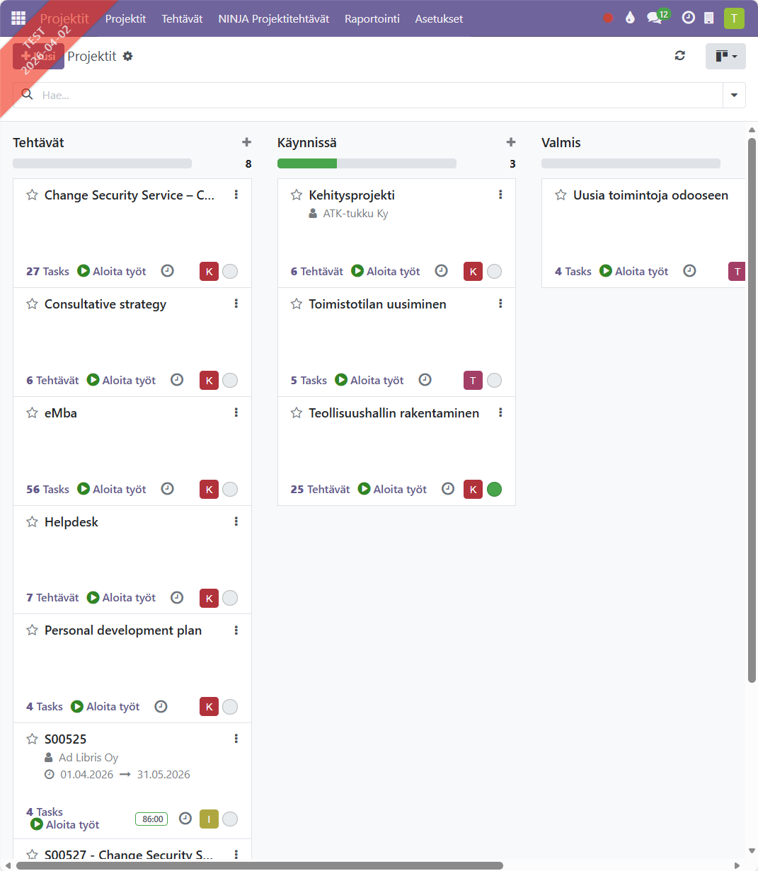 Tehtävien ja aikataulujen hallinta selkeässä näkymässä, jossa projektin etenemistä voi seurata reaaliajassa