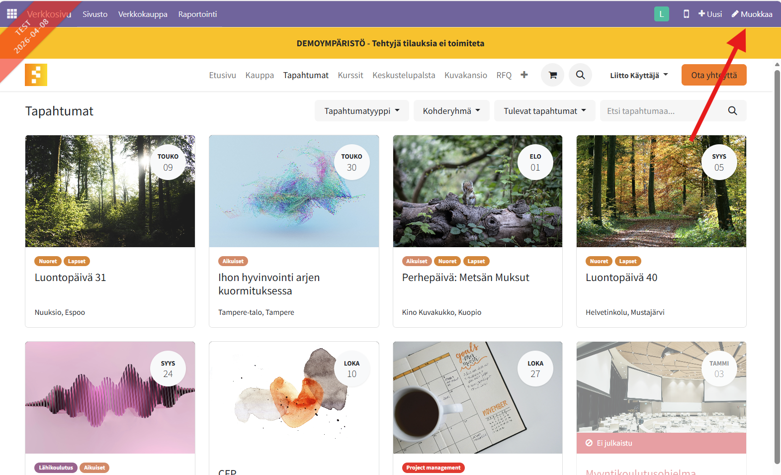 Kuinka hoidat tapahtuman tai koulutuksen markkinoinnin? Entä ilmoittautumiset? Miten kerätään tiedot ruokarajoitteista tai majoittautumistoiveista? Onko jossakin jonotuslista? Mistä laitat muistutusviestin ilmoittautujille? Millä tavalla ilmoittautujia laskutetaan? Ovatko kaikki maksaneet laskunsa?