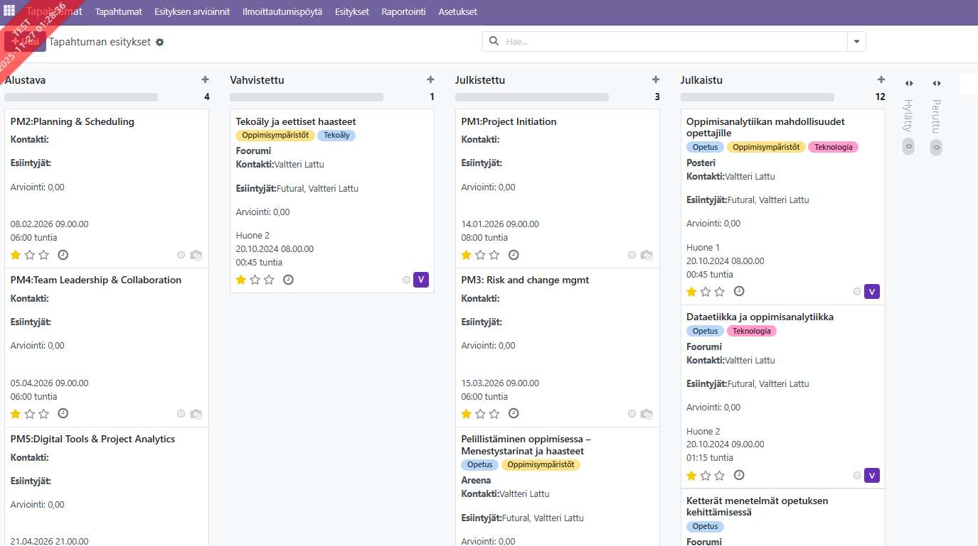 Hallinnoija siirtää hyväksytyt esitysehdotukset tilaan "julkistettu". Ehdotusten tekijät pääsevät vielä muuttamaan ja viimeistelemään ehdotuksiaan.