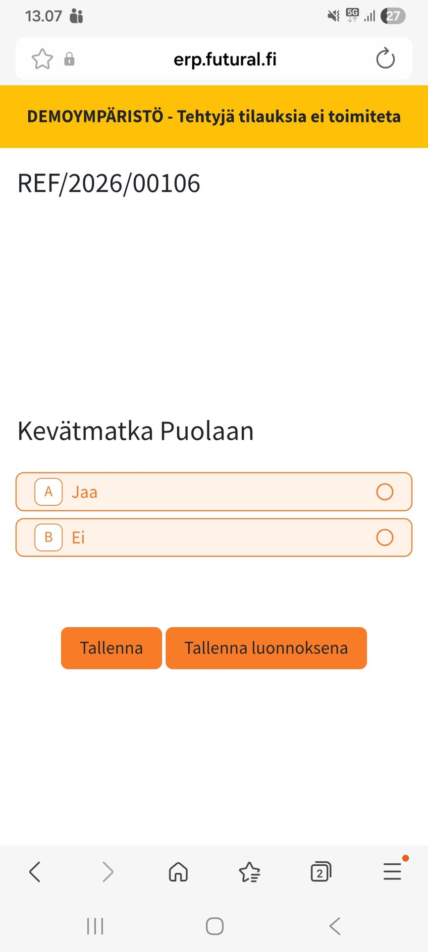 Session aloittamisen jälkeen vastaajille tulee ensimmäinen kysymys näkyviin. Näkymä voidaan joutua päivittämään.