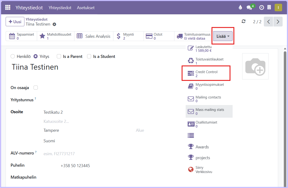 Mikäli tämä ei näy, tarvitset oikeudet Luotonvalvonta-ryhmään.