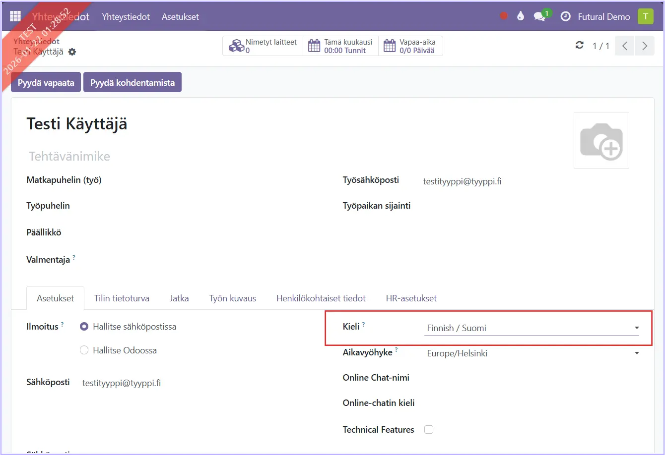 Futural-järjestelmää voidaan käyttää useilla kielillä. (Monikielisyyden käyttöönotto vaatii teknisiä asetuksia. Ota tarvittaessa yhteyttä tukeen, jos haluat ottaa ominaisuudet käyttöön.)