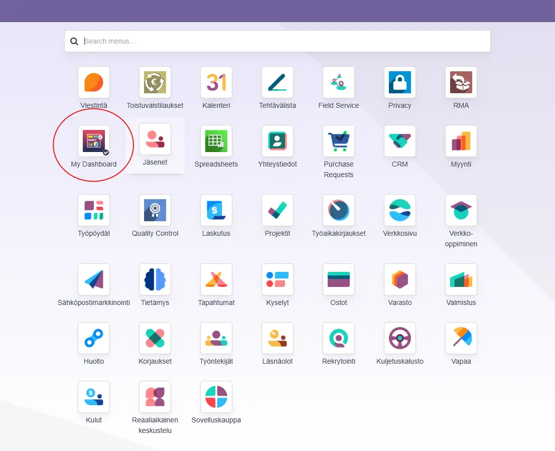 Tärkeää! "My dashboard"-nimestään huolimatta tämän moduulin kautta luodut dashboardit ovat yhteisiä ja näkyvissä kaikille.