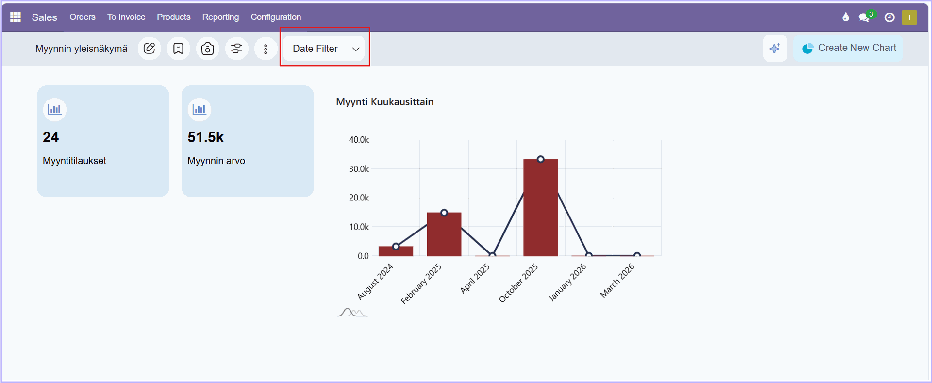 - Date filter päivttää raportin päivämäärä väliä