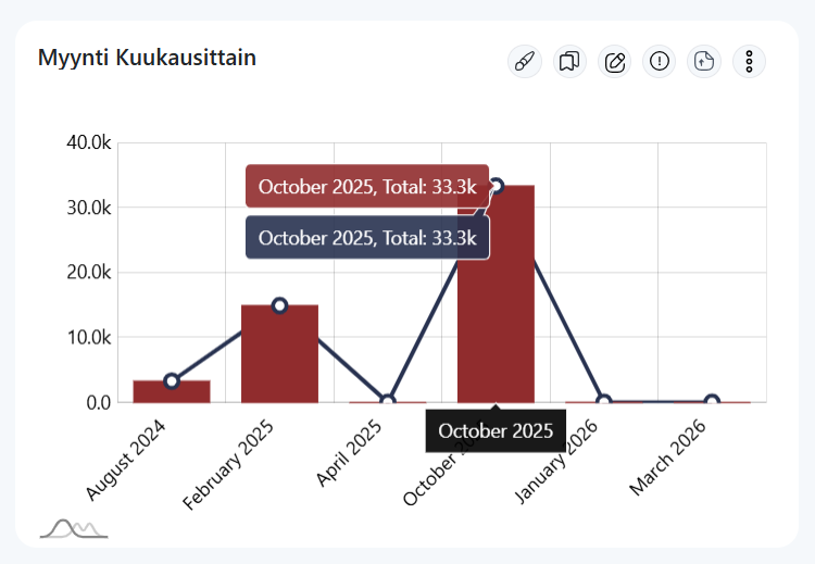 Dashbord näkymästä pääset editointi tilaan viemällä hiiren kuvaajan päälle ja klikkaamalla kynän kuvaa.