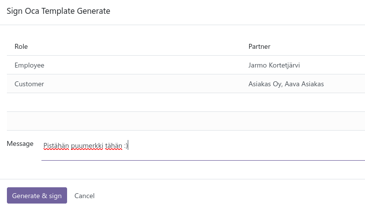 Allekirjoittaja saa pyynnön: