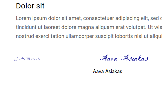 - Signature – allekirjoitus