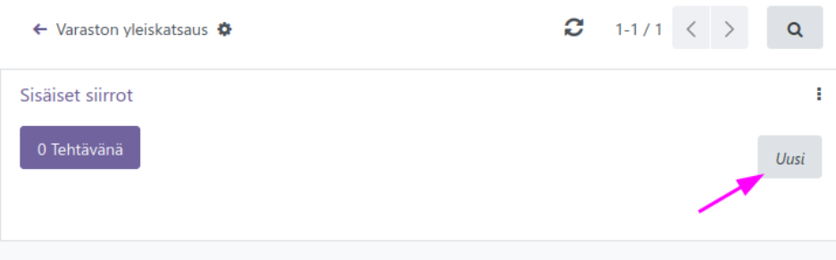 Käynnistä sisäinen siirto klikkaamalla "Sisäinen siirto” ja “Uusi”: