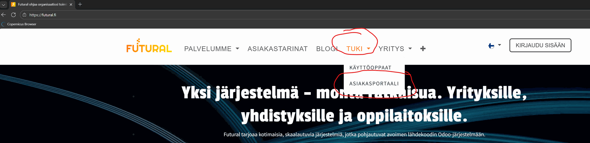 Futural Oy:n asiakasportaaliin kirjautuminen