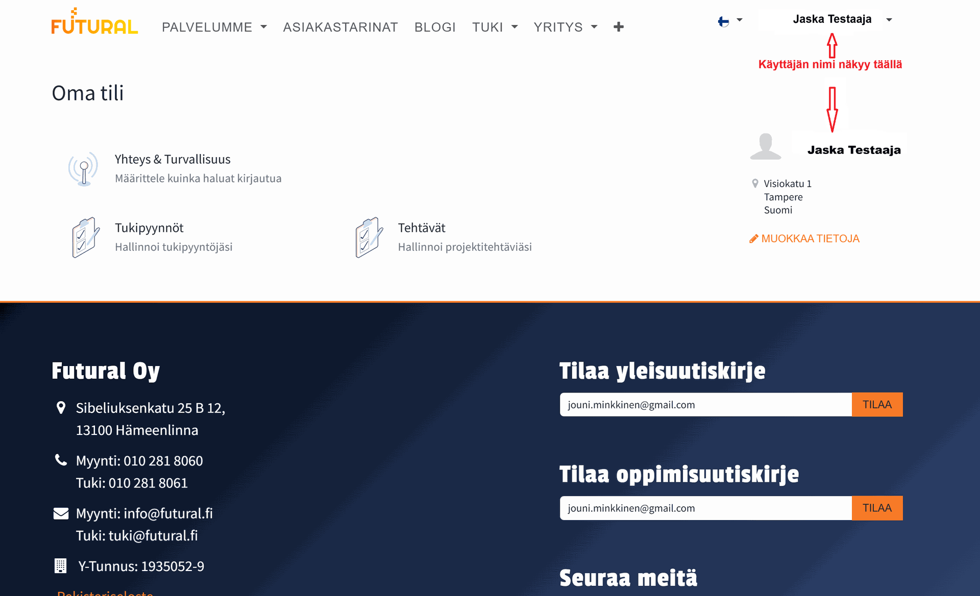 Futural Oy: tunnukset tukipalvelun asiakasportaaliin